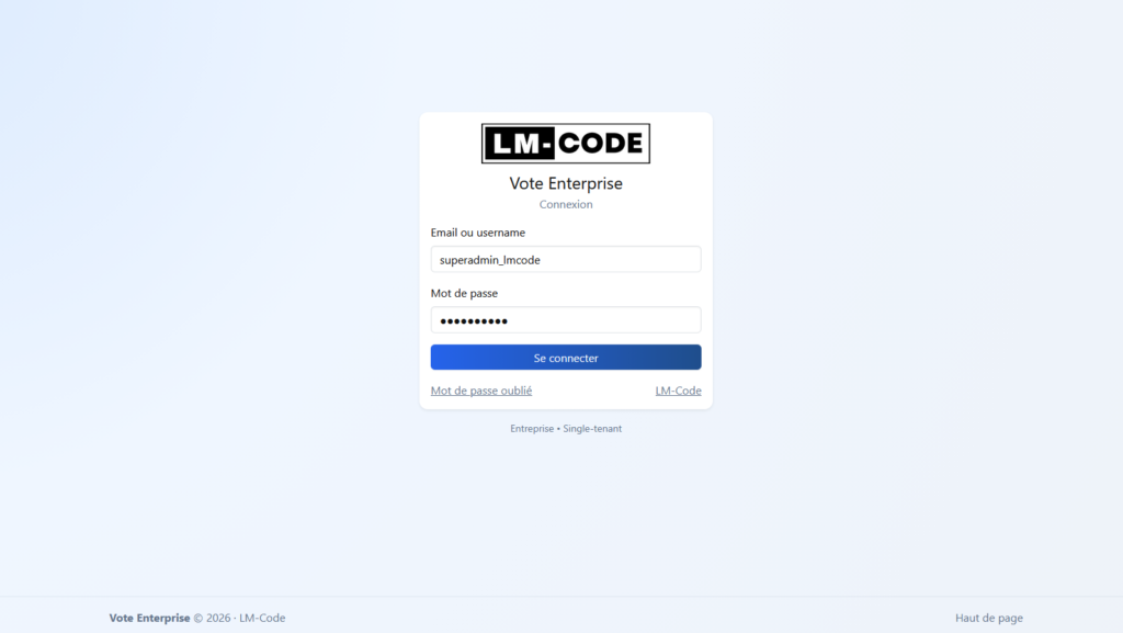 L’application de Vote Électronique est une plateforme de vote d’entreprise couvrant l’ensemble du cycle de vie d’un scrutin, de sa création jusqu’à l’archivage, en passant par le vote et la publication des résultats.